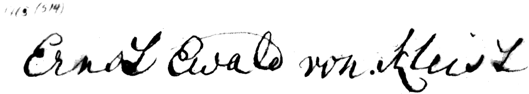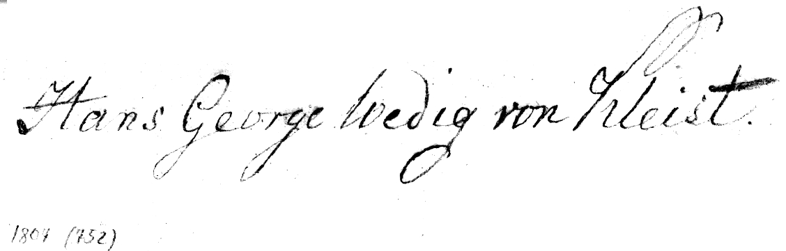 Die folgende Unterschriftensammlung mit mehr als 100 Unterschriften aus dem 17. bis 19. Jahrhundert hat der Familienverband um 2005 mit anderen Familienunterlagen, die im Besitz des Kammergerichtspräsidenten Adolph von Kleist gewesen waren, erworben. Es handelt sich im wesentlichen um abgepauste Unterschriften von Familienmitgliedern unter Urkunden. Die Unterschriften enthalten meistens einen Vermerk mit einer Jahreszahl der Urkunde und einer Nummer. Die Sammlung enthält allerdings erkennbar herausgeschnittene Lücken. So dürften aus dieser Sammlung die Unterschriften entnommen sein, die sich unter den Lithographien in unserer Familiengeschichte befinden. Diese sind hier nicht mit übernommen worden. Die Zuordnung der Unterschriften erfolgte ursprünglich nach eindeutigen Namen. Als der Familienverband 2021 vom Staatsarchiv Stettin eine Kopie der von Steinbrück gedruckten Stammtafel von 1823 erhielt, zeigte sich, dass dessen genealogische Numerierung für die Bezeichnung der Unterschriften verwendet worden ist. Damit konnten sehr viele weitere Unterschriften zugeordnet werden.