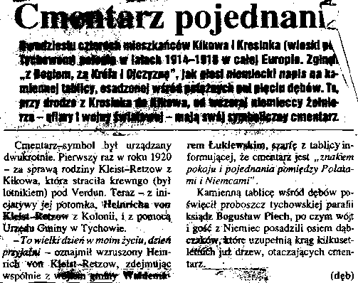 Wiederherstellung und Einweihung November 1997, mit kräftiger Unterstützung durch Waldemar Lukiewski (+), Bürgermeister von Tychowo