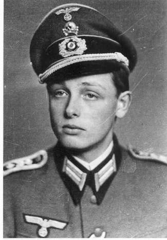 | Volker v. Kleist geboren Wendisch Tychow 4. 9. 1924 in der Uniform eines Oberfähnrichs im Kavallerie-Regiment 5 - Stolp/Pommern Gefallen am 5. 3. 1945 als Leutnant und Ordonanz- Offizier im selben Regiment während einer Erkundung in Ungarn Etwa zur gleichen Zeit besetzte die sowjetische Soldateska Wendisch-Tychow. Kurz zuvor waren die Eltern, einer Aufforderung der Bäuerin Minna Stüwe folgend, auf den einsam am Wald liegenden Stüwe-Hof ausgewichen. |